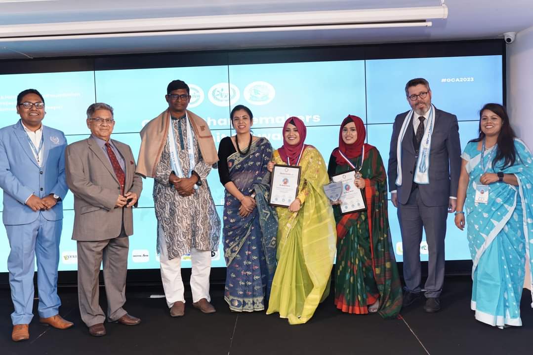 আলোচনা শেষে যারা জলবায়ু পরিবর্তন ছাড়াও শিক্ষা ক্রীড়া ,আইন পেশা ও সমাজ সেবামূলক কার্যক্রম, নারীর ক্ষমতায়ন ইত্যাদিতে বিশেষ অবদান রেখেছেন তাদেরকে গ্লোবাল চেঞ্জ মেকার অ্যাওয়ার্ড ২০২৩-এ ভূষিত করা হয় এবং তাদেরকে সম্মেলনে অ্যাওয়ার্ড মেডেল ও সার্টিফিকেট প্রদান করা হয়। অ্যাওয়ার্ড প্রাপ্তদের মধ্যে আন্তর্জাতিক ট্রাভেল ও সোশ্যাল নেটওয়ার্কিং এ আসমা আজমেরী, গণমাধ্যম ও প্রযোজনায় সালাউদ্দিন ইউসুফ, শিক্ষা ও গবেষণায় নেপালের প্রফেসর ডক্টর বিনু সিটুলা, বাংলাদেশ সুপ্রিম কোর্টের আইনজীবী এডভোকেট মঞ্জুর মোর্শেদ, দিশারী যুব ফাউন্ডেশন বাংলাদেশ এর চেয়ারম্যান ও বাংলাদেশ সুপ্রিম কোর্টের আইনজীবী এডভোকেট মোঃ সারোয়ার হোসাইন লাভলু, নারীর ক্ষমতায়ন, সোশ্যাল বিজনেস ও মার্কেটিং এর উপর কনফারেন্সে সর্বকনিষ্ঠ অ্যাওয়ার্ডি হিসেবে সহোদর জমজ বোন মারজান আজমি ও রাইয়ান আজমি এই পুরস্কার প্রদান করা হয়।